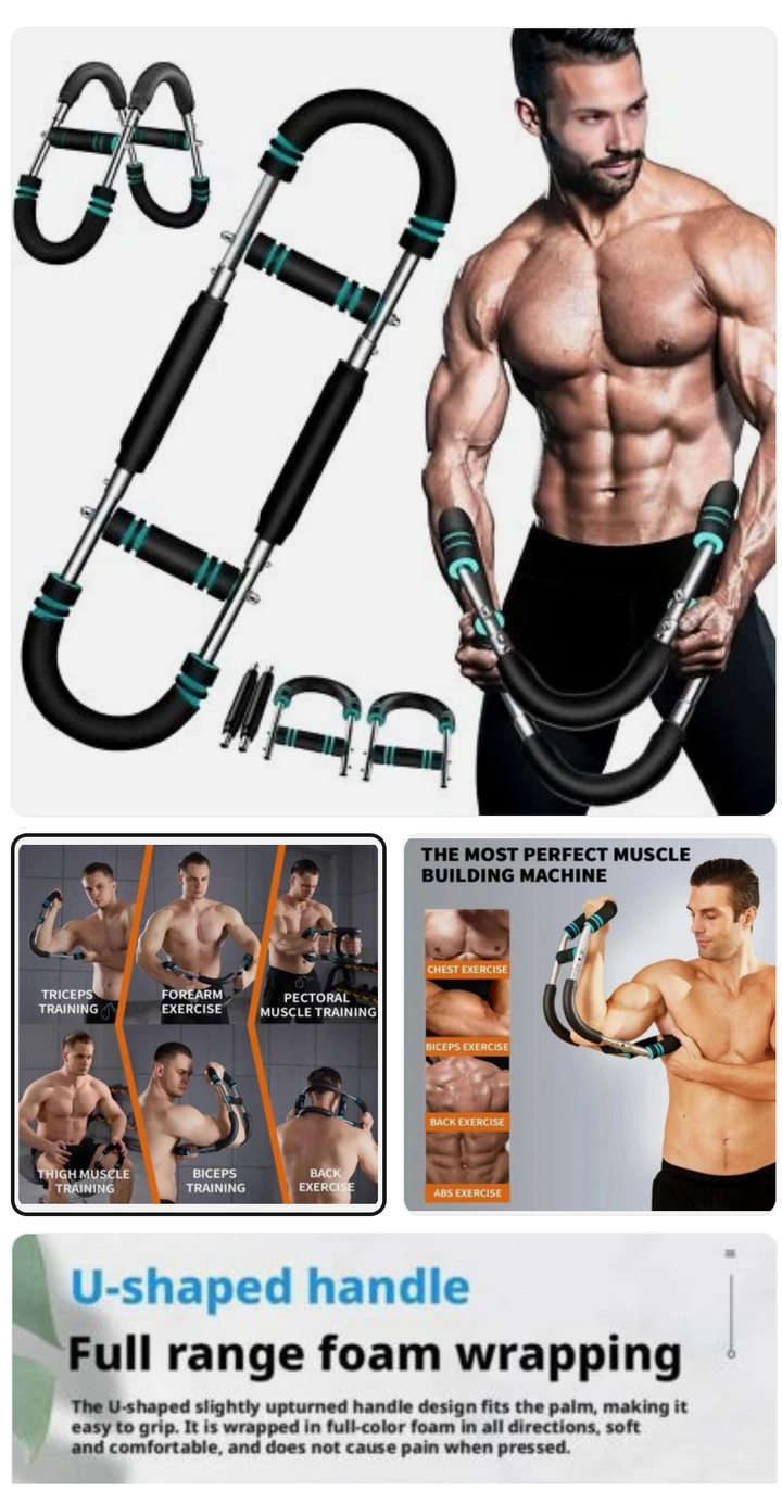 The ALAJAL Multifunctional Arm Trainer is a powerful fitness tool designed to strengthen your arms, chest, shoulders, wrists, and upper body muscles. Its durable precision steel build and stable double-spring design provide smooth resistance and long-lasting performance.
