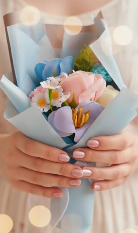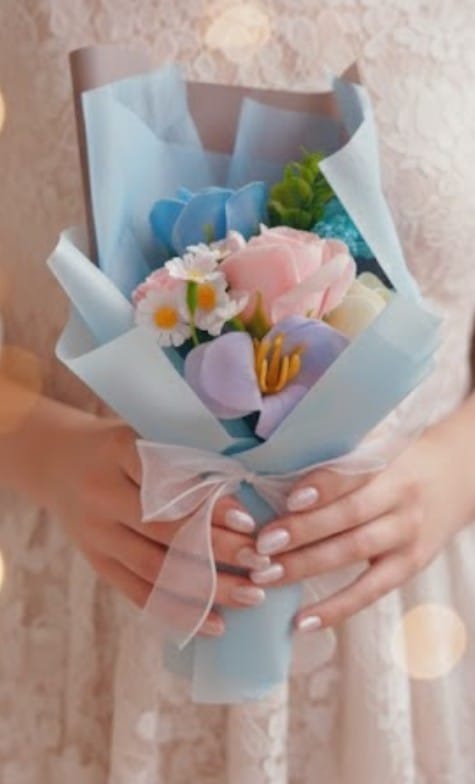 Soft pink, blue, white aur yellow flowers ka beautiful combination is bouquet ko ek classy, fresh aur romantic look deta hai. High-quality artificial flowers se tayyar, jo hamesha fresh dikhte hain—perfect for gifting!